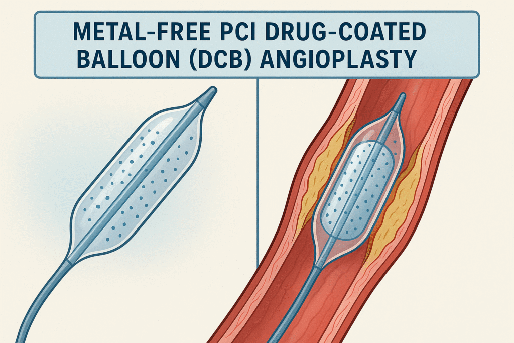 Traditional angioplasty often requires placing a metallic stent. While effective, stents can sometimes cause long-term issues such as late thrombosis, chronic inflammation, or complications if bypass surgery is needed later.